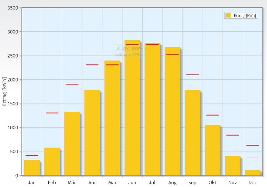 Die Anlage erzeugt eine Leistung von maximal 24 kW. Dazu besitzt sie 76 Module, etwa zur Hälfte mit süd-östlicher und süd-westlicher Ausrichtung bei jeweils 15° Neigung, so dass sich der Ertrag etwa gleichmäßiger über den Tag verteilt. Zur Aufständerung kommt eine Rahmenkonstruktion aus Aluminiumprofilen zum Einsatz, die mit Betonplatten beschwert die Anlage sicher auf dem Dach fixiert. Der Stromertrag lag 2025 bei rund 20 MWh . In Summe wurden bisher störungsfrei 111 MWh Strom erzeugt. Damit trug die Anlage bei 100% Eigenverbrauchsdeckung dazu bei, den Netzstrombezug des Gebäudes um etwa 10% zu verringern. Im Kontext des Projektes haben wir auch den Energieverbrauch aller Liegenschaften unserer Universität ausgewertet.