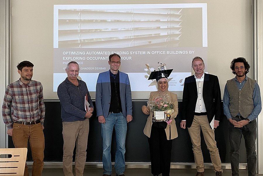 Am Donnerstag, den 15.12. hat Ghadeer Derbas erfolgreich ihre Dissertation zum Thema "Optimizing Automated Shading Systems Design and Operation by learning occupant behaviour in Office Buildings" verteitigt. Herzlichen Glückwunsch!