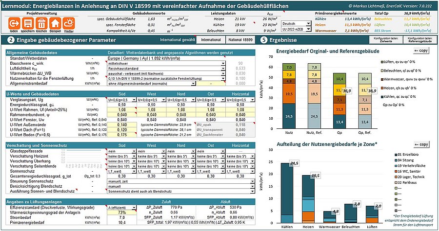 EnerCalC - Energiebedarfsberechnungen sind bei großen Gebäuden eine komplexe Aufgabe. Das liegt an der notwendigen Abbildungstiefe der Nutzenergiebedarfe einzelner Nutzungsbereiche (Zonen) und der Energieversorgungstechnik. Die umfangreiche DIN V 18599 beinhaltet dazu den normativen Rahmen. Insbesondere für die universitäre Lehre und die frühe, konzeptionelle Phase sind die meisten kommerziell verfügbaren Werkzeuge für die Energiebedarfsermittlung meist zu aufwendig und zu wenig transparent. Genau hierfür wurde im Rahmen einer Dissertation ein vereinfachtes, zeiteffizientes und trotzdem hinreichend belastbares Verfahren unter dem Namen „EnerCalC“ entwickelt und publiziert (Dr. Markus Lichtmeß).